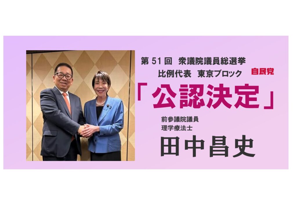 本日、第51回衆議院議員総選挙が公示されました。 私、田中昌史は、この度、自由民主党から比例代表 東京ブロック 候補者として立候補させていただくことを決意いたしました。 高市早苗政権のもと、物価高騰対策、所得税…